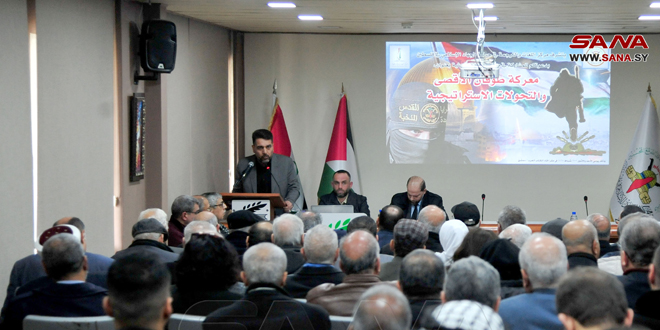 أقام مركز اللغات والترجمة في حركة الجهاد الإسلامي الفلسطيني واتحاد الكتاب العرب ندوة بحثية بعنوان “طوفان الأقصى والتحولات الإستراتيجية” شارك فيها كتاب وباحثون ومفكرون وسفير الجمهورية الإسلامية الإيرانية بدمشق حسين أكبري.