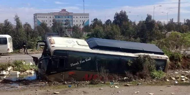 أصيب عدد من الأشخاص جراء تدهور حافلة ركاب على طريق تحويلة حمص حماة.