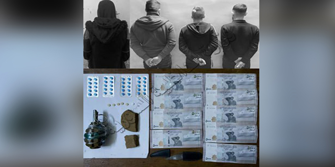 وأشارت الوزارة إلى أن المقبوض عليه اعترف بتعاطي وترويج الحبوب المخدرة وترويج العملة السورية المزيفة، وذلك بالاشتراك مع أشخاص آخرين بينهم امرأة، حيث تم إلقاء القبض عليهم وعثر بحوزتهم على 5 حبوب كبتاغون مخدرة وكمية من مادة الحشيش المخدر و 40 حبة دوائية مخدرة وثلاث قطع نقدية من فئة الخمسة آلاف مزيفة.