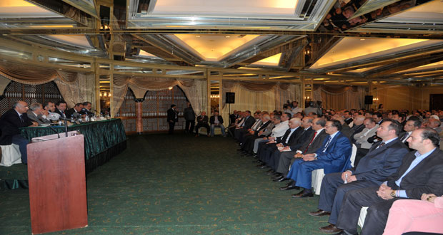 بدوره غسان القلاع رئيس مجلس إدارة غرفة تجارة دمشق أشار إلى ضرورة ترجيح التوافق وتوحيد الجهود في خدمة الاقتصاد الوطني بكل جوانبه وقطاعاته لافتا إلى سماح الجانب المصري بعبور العبارات من ميناء طرطوس إلى الموانئ المصرية لنقل البضائع بالبرادات إلى البلدان العربية خفف من أثر إغلاق معبر نصيب الحدودي على الصادرات والذي جرى بجهود العديد من الصناعيين والتجار والمصدرين الذين عملوا على هذه القضية لخدمة مصالحهم ومصلحة البلد داعيا إلى تبني مثل هذه الروح في مواجهة أي قضايا تواجه مجتمع الأعمال.