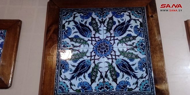 وتحدث الفنان أحمد الكردي رئيس جمعية المهن التراثية بحمص عن مشاركته بالرسم على الزجاج والقيشاني بهدف لفت النظر على واحدة من أهم المهن التراثية.