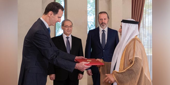تقبل السيد الرئيس بشار الأسد أوراق اعتماد، حسن أحمد محمد سليمان الشحي سفيراً مفوضاً فوق العادة لدولة الإمارات العربية المتحدة لدى الجمهورية العربية السورية.