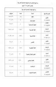 أصدرت وزارة التربية اليوم برامج امتحانات الشهادة الثانوية العامة بفرعيها العلمي والأدبي، والشهادة الثانوية الشرعية للدورة الأولى، وشهادة التعليم الأساسي، وشهادة الإعدادية الشرعية.