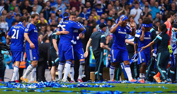 انتزع فريق تشيلسي لقبه الخامس في الدوري الانكليزي الممتاز لكرة القدم بعد تغلبه اليوم على ضيفه كريستال بالاس بهدف مقابل لا شيء ليتربع على صدارة الدوري بفارق لا يمكن للفرق المنافسة تعويضه.