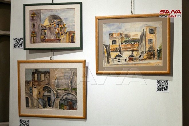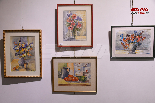 المعرض الذي يستضيفه غاليري زوايا ضم 60 عملاً فنياً بتقنية الألوان المائية وبأسلوب انطباعي وبأحجام صغيرة نسبياً رسمتها الفنانة خلال مسيرتها الطويلة على مدى 60 عاماً، موثقة من خلالها لأماكن في اللاذقية وريفها وطرطوس وحلب ودمشق، بالإضافة للوحات بورتريه شخصي لها من عدة أزمنة ولوحات جسدت فيها مشاهد من الطبيعة وأخرى قدمت من خلالها الطبيعة الصامتة.