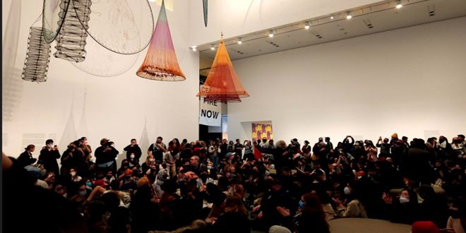 اقتحم مئات النشطاء والمتضامنين مع الشعب الفلسطيني، مبنى “متحف الفن الحديث” في حي مانهاتن بولاية نيويورك، للمطالبة باتخاذ موقف ضد الإبادة الجماعية في قطاع غزة، وسياسة الفصل العنصري التي تمارسها “إسرائيل” بحق الشعب الفلسطيني.