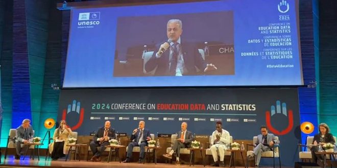 الوفد السوري الذي ترأسه معاون وزير التربية للشؤون التربوية الدكتور رامي الضللي، وضم مندوب سورية الدائم لدى منظمة اليونسكو بباريس الدكتور لؤي فلوح، ورئيسة دائرة الإحصاءات الاجتماعية في المكتب المركزي للإحصاء منال حمود، قدم خلال جلسة رفيعة المستوى في ثالث أيام المؤتمر عرضاً حول أعمال الرصد والمتابعة الإحصائية لواقع المدارس في سورية لتحديد الوضع التعليمي والإداري والطلابي.