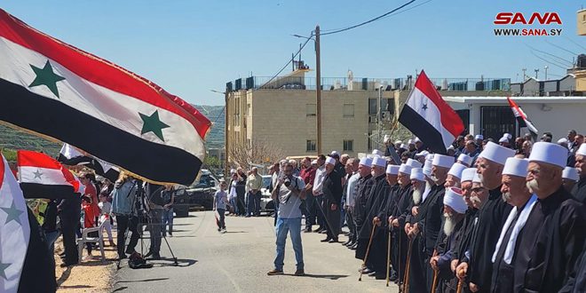 الشيخ نزيه محمود شدد على أن أبناء الجولان على مر التاريخ قاوموا كل الاحتلالات التي مرت على سورية من العثماني إلى الفرنسي وصولاً إلى الإسرائيلي، وقدموا مئات الشهداء والأسرى دفاعاً عن ثرى الجولان وانتمائه لسورية، مؤكدين أنه مهما طال ليل الاحتلال سيبقى الجولان عربياً سورياً.