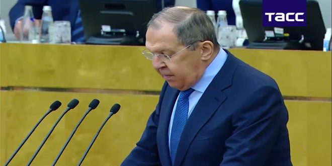 وقال لافروف خلال كلمة له في مجلس الدوما اليوم: إن “الاختيار الذي اتخذه الرئيس فلاديمير بوتين بدعم من الطبقة السياسية والشعب بأكمله للدفاع عن المصالح الحيوية لروسيا هو وضع بلادنا دون مبالغة في طليعة النضال من أجل مستقبل أفضل للعالم أجمع “، مشيراً إلى أن ” واشنطن وحلفاءها لا يتخلون عن أحلامهم في إلحاق هزيمة إستراتيجية بروسيا الاتحادية”.
