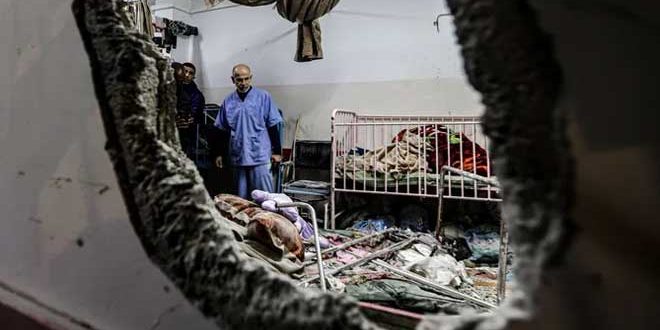 أدان المكتب الإعلامي في غزة بأشد العبارات اقتحام قوات الاحتلال الإسرائيلي مجمع ناصر الطبي في مدينة خان يونس جنوب قطاع غزة واصفاً ذلك بجريمة حرب يندى لها جبين البشرية.