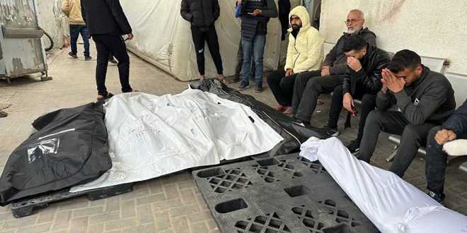 واستشهد عشرات الفلسطينيين وأصيب آخرون أمس جراء قصف الاحتلال الصاروخي والمدفعي المتواصل على مناطق مختلفة من قطاع غزة المنكوب لليوم الـ 132، في حين أعلنت وزارة الصحة الفلسطينية في أحدث حصيلة لها عن ارتفاع عدد ضحايا العدوان الإسرائيلي المتواصل على القطاع إلى 28663 شهيداً و68395 جريحاً وذلك في حصيلة غير نهائية.