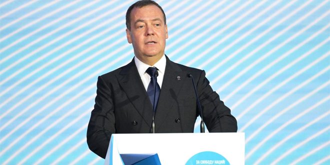 وخلال المنتدى الدولي لأنصار النضال ضد الممارسات الاستعمارية الحديثة المنعقد في موسكو اليوم، اعتبر ميدفيديف أن ممثلي الأحزاب السياسية والمنظمات العامة من مختلف أنحاء العالم المجتمعين في المنتدى في موسكو من آسيا وأفريقيا والشرق الأوسط وأوروبا وأمريكا اللاتينية يمثلون الأغلبية العالمية الحقيقية، ويجتمعون على ضرورة رخاء شعوبهم وتطوير بلدانهم بعيداً عن الممارسات الاستعمارية الجديدة.