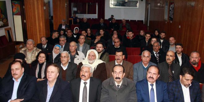 حضر اللقاء جهاد خازم رئيس رابطة المحاربين القدماء ومديرة الثقافة بدمشق نعيمة سليمان وأعضاء المكتب التنفيذي في اتحاد الكتاب العرب.