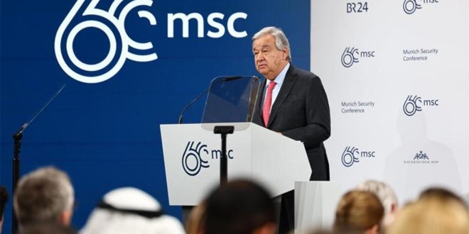وقال غوتيريش في كلمة أمام مؤتمر ميونخ للأمن اليوم: “إن الوضع في غزة نتيجة للجمود الذي وصلت إليه العلاقات الدولية، كما أن مستوى الموت والدمار صادم”.