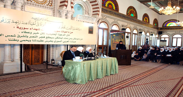 وتضرعت الداعيات إلى الله تعالى بأن “يحفظ سورية وينصر أهلها وجيشها وقائدها”.