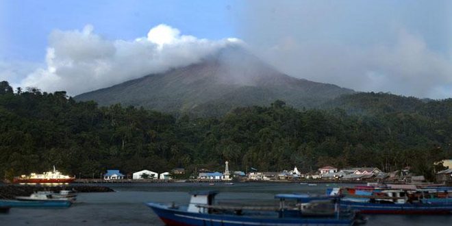 حذر مركز علم البراكين والتخفيف من آثار الكوارث الجيولوجية الإندونيسي السكان من كتل السحب الساخنة التي تشكلت فوق جبل كارانجيتانغ في منطقة جزر سيتارو بإقليم سولاويسي شمال إندونيسيا.