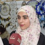 هناء جحجاح وأخواتها ملك وهدى يعرضن منتجاتهن من القطع المشغولة يدوياً ومنها الميلان وأميزها شغل الدبوس وهي قطعة تراثية وإنجازها صعب إلا أنها تلاقي إقبالاً لدى الكثيرين وجميع المشغولات تستغرق أشهراً للانتهاء منها كما قالت هناء.