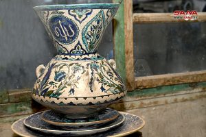 لوحات بديعة من الخزف الملون غطت البيوت والحمامات والخانات الدمشقية القديمة عبر مئات السنين لتصبح حرفة القيشاني واحدة من ركائز الهوية التراثية لأقدم مدن التاريخ، ومنها انطلقت هذه الزخارف الطينية لتجوب العالم من خلال الهدايا والتحف الثمينة بما يروج للإبداع الدمشقي الأصيل.
