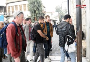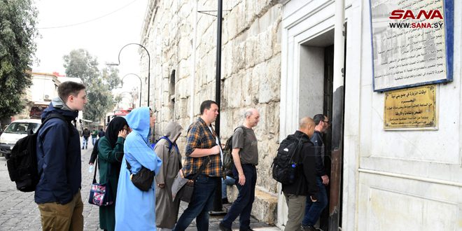 زارت مجموعة سياحية تتضمن 12 سائحاً من جنسيات بريطانية وسلوفاكية وإيرلندية وفرنسية وأميركية ونمساوية مدينة دمشق القديمة اليوم، واطلعت على المعالم الأثرية والدينية فيها وجالت في أسواقها وأحيائها.