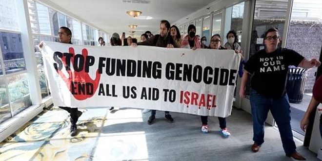 اقتحم متظاهرون مؤيدون للشعب الفلسطيني فندقاً في مدينة سان فرانسيسكو بولاية كاليفورنيا الأمريكية، حيث تواجد الرئيس الأمريكي جو بايدن لمطالبته بوقف الإبادة الجماعية التي تدعمها إدارته وتمولها والتي يرتكبها كيان الاحتلال الإسرائيلي في قطاع غزة.