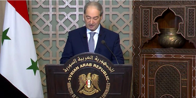 وأكد المقداد التزام سورية بحماية مواطنيها من الإرهاب ومن الانتهاكات التي ترتكبها المجموعات الإرهابية بحقهم، استجابة لالتزاماتها الوطنية والدولية، واستمرار بذلها قصارى جهدها لتهيئة البيئة اللازمة والملائمة لعودة اللاجئين والمهجرين داخلياً بفعل الإرهاب إلى وطنهم وديارهم بصورة كريمة، لافتاً إلى أن سورية ستستمر بمواجهة الآثار الكارثية للإجراءات القسرية الأحادية الجانب المفروضة من الدول الغربية، والتي تهدف إلى تجويع الشعب السوري وانتهاك حقوقه الأساسية.