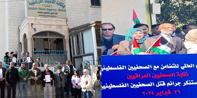 وفي الأردن نظمت وكالة الأنباء الأردنية “بترا” وقفة تضامنية مع الصحفيين الفلسطينيين في ظل الظروف الحالية التي يعانونها جراء العدوان الإسرائيلي على قطاع غزة حيث رفع المشاركون شعارات داعمة وصوراً للصحفيين الذين استُشهدوا برصاص قوات الاحتلال الإسرائيلي خلال عدوانه على غزة.