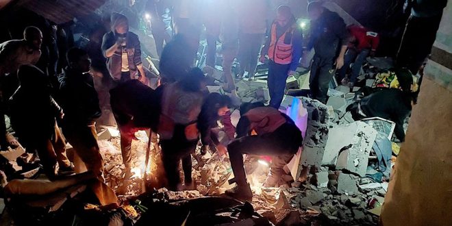 إلى ذلك قال الهلال الأحمر الفلسطيني: إن طواقمه نقلت 34 إصابة، جراء قصف الاحتلال منزلين ليلة أمس في مدينة دير البلح وسط قطاع غزة، كما قصف الاحتلال بالمدفعية حي الزيتون جنوب شرق مدينة غزة.