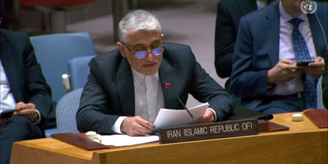 وأكد سفير إيران لدى الأمم المتحدة أنه يتوجب على جميع القوات الأجنبية الموجودة بشكل غير قانوني في سورية أن تغادر البلاد دون أي شروط مسبقة أو تأخير، مجدداً موقف بلاده الداعي لإيجاد حل سياسي للأزمة في سورية يحترم سيادة وسلامة ووحدة الأراضي السورية.