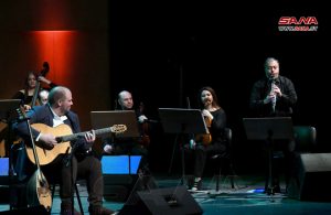 وعلى ألحان كوكبة من الموسيقيين السوريين جمعت كل العازفين “أغيد منصور بيانو، ليلى صالح كونترباص، أمجد الحايك غيتار أكوستيك، محمد شحادة على الإيقاع، باسم صالحة كلارينيت” إضافة إلى رباعي وتري ضم كلاً من عازفي الكمان رزان قصار وعامر داكشلي، مروان أبو جهجاه على آلة الفيولا وعازف التشيللو محمد نامق أستدل الستار معلناً انتهاء الأمسية.