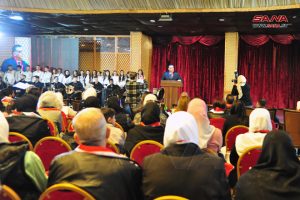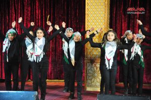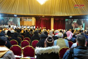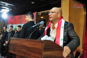 وتخلل الحفل العديد من الفقرات الفنية واللوحات الفلكلورية والأغاني، قدمها كورال محافظة ريف دمشق بالتعاون مع اتحاد شبيبة الثورة ومنظمة طلائع البعث.