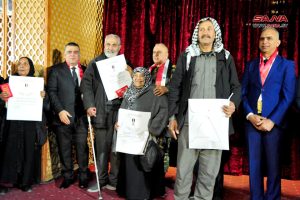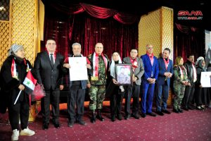 تخليدا لذكرى الشهداء، كرمت محافظة ريف دمشق بالتعاون مع مديرية شؤون الشهداء والجرحى والمفقودين 161 من أسر الشهداء وسلمتهم أوسمة الإخلاص إجلالاً وإكباراً لأرواح الشهداء الذين ضحوا بدمائهم ليحيا الوطن، ضمن حفل أقيم في مجمع صحارى.