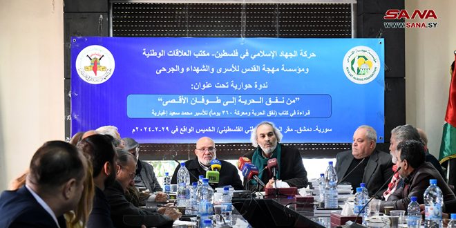 أقامت حركة المقاومة الوطنية الفلسطينية “الجهاد الإسلامي” ومؤسسة مهجة القدس للأسرى والشهداء والجرحى، ندوة حوارية بعنوان “من نفق الحرية إلى طوفان الأقصى… قراءة في كتاب نفق الحرية ومعركة 360 يوماً في سجون الاحتلال للأسير محمد سعيد إغبارية”، وذلك في مقر المجلس الوطني الفلسطيني بدمشق.