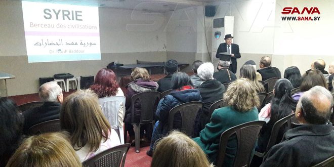 واستهل الدكتور الأديب نزيه بدور رئيس فرع الجمعية، محاضرته “سورية مهد الحضارات”، وذلك في صالة كنيسة البشارة بحمص، بتعريف مفهوم الحضارة وفقاً لعدد من المرجعيات الأدبية والمفكرين، حيث عرفها مجمع اللغة العربية في القاهرة بأنها الرقي الاجتماعي والأدبي في الحضر.