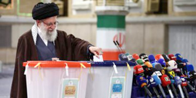 وأكد قائد الثورة الإسلامية في إيران السيد علي الخامنئي خلال إدلائه بصوته في حسينية الإمام الخميني في طهران أهمية الانتخابات التي تشهدها البلاد حالياً، وقال: “إن العالم ينظر إلينا ليرى ماذا ستفضي إليه الانتخابات في إيران، وأرجو أن نسعد الأصدقاء ونحبط مآرب العدو”.