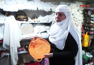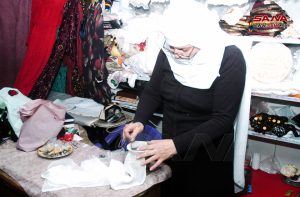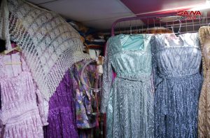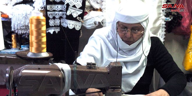 شغف السيدة الستينية صالحة نجم الحلبي بالتراث دفعها لتأسيس مشروعها الخاص بخياطة الألبسة والتركيز على التراثية منها، ولا سيما الأزياء الشعبية من مناديل وفساتين وغيرها من الأنواع التي تشتهر بها مدينة السويداء.