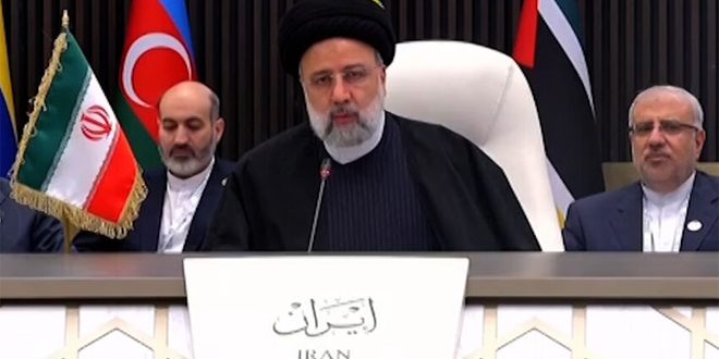 وقال رئيسي في كلمة له اليوم أمام قمة رؤساء منتدى الدول المصدرة للغاز في الجزائر: “إن تأسيس الكيان الصهيوني تم وفقا لمخطط استعماري، بهدف الحفاظ على نظام الهيمنة الاستعماري في منطقتنا”، مشيراً إلى أن كيان الاحتلال تلقى ضربات مهلكة لن تعوض بفعل المقاومة الفلسطينية.