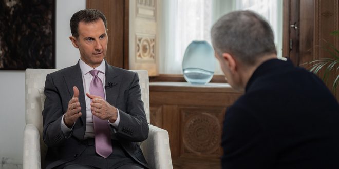 وشدد الرئيس الأسد في مقابلة مع الصحفي الروسي فلاديمير سولوفيوف على أن “إسرائيل” محتلة ومعتدية، تقتل الفلسطينيين لأنهم يدافعون عن أنفسهم وهذا هو مختصر ما يجري، ولا نستطيع أن نتحدث عما حصل في الـ 7 من تشرين الأول دون الحديث عما حصل في عام 1930 وما بعده حتى اليوم لأنه حالة واحدة.