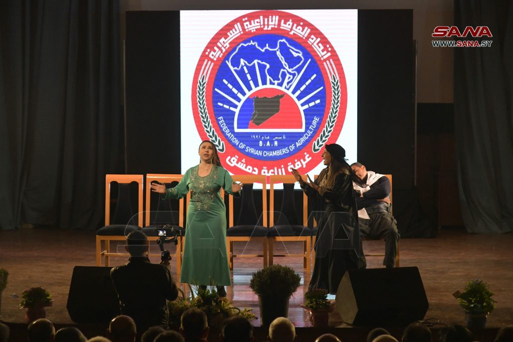 وقدمت فرقة المسرح الإرشادي خلال الاجتماع عرضاً مسرحياً توعوعياً إرشادياً بعنوان (مهندس.. بضيعتنا) يوضح كيفية العناية بشجرة الزيتون وجني ثمارها ونقل الثمار وتجميعها وكيفية تخزين زيت الزيتون بطريقة سليمة تحافظ على جودته.