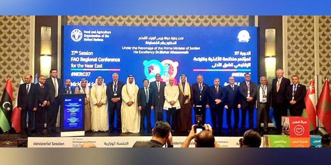 بمشاركة سورية انطلقت في العاصمة الأردنية عمان اليوم أعمال الدورة الـ 37 للمؤتمر الإقليمي لمنظمة الأغذية والزراعة للشرق الأدنى وشمال إفريقيا (الفاو).