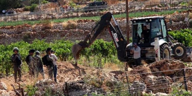 إلى ذلك جرفت قوات الاحتلال 40 دونماً زراعياً في قرية وادي فوكين غرب مدينة بيت لحم، واقتلعت 400 غرسة زيتون.