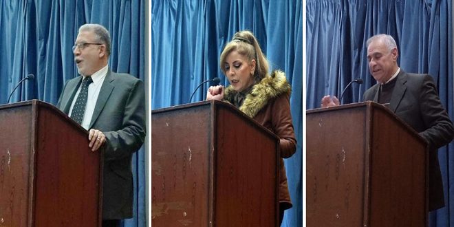 واستهل الأمسية التي حملت عنوان “أعياد آذار المجيدة” الشاعر محمد سامر الشيخ طه بقصائد وجدانية ووطنية الأولى بعنوان “هل للشعر عنوان” عن معنى الشعر وكيف يؤثر ويتأثر بالواقع والثانية “جراح الوطن” وفيها أمنيات للوطن بأن يظل شامخاً قوياً بعزيمة أبنائه المخلصين والأخيرة بعنوان “من مثل أمي” وفيها معاني العرفان لأفضال الأم التي لاتقدر بثمن.