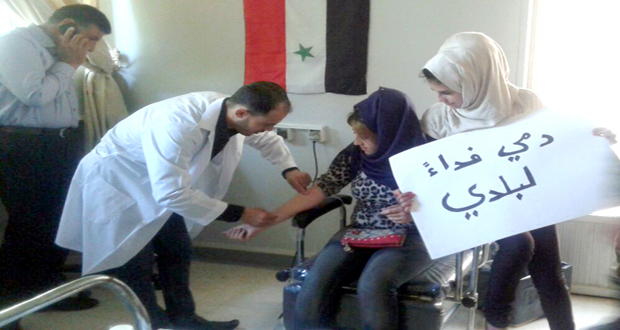 وفي اللاذقية عبر إعلاميون مشاركون بحملة تبرع بالدم عن تقديرهم لتضحيات الجيش العربي السوري في مواجهة الإرهاب الوهابي التكفيري الذي تتعرض له سورية.