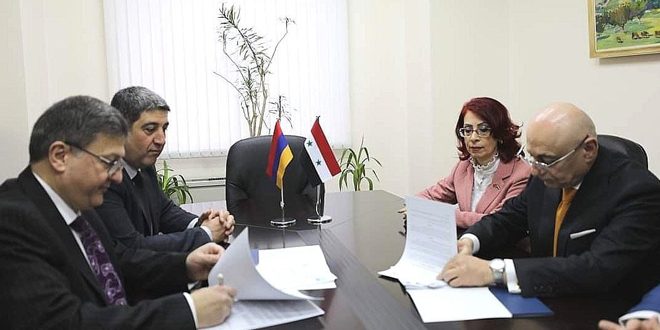 حضر التوقيع مدير إدارة الشرق الأوسط في وزارة الخارجية الأرمينية الدكتور أرسين أراكيليان، وسفيرة سورية في أرمينيا الدكتورة نورا أريسيان، وأعضاء السفارة.