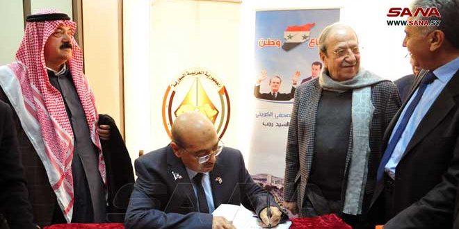 أقام اتحاد الصحفيين اليوم حفل توقيع كتاب “صُنّاع وطن” للكاتب والصحفي الكويتي “فخري هاشم السيد رجب”، وذلك في مكتبة الأسد الوطنية بدمشق.