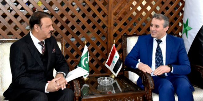 بحث وزير الصناعة الدكتور عبد القادر جوخدار مع السفير الباكستاني بدمشق شاهد أختر سبل تعزيز آليات التعاون بين سورية وباكستان والفرص الاستثمارية المتعلقة بالقطاع الصناعي.