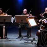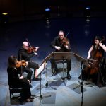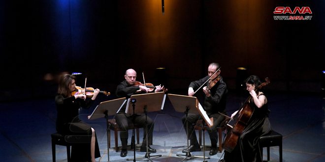 الأمسية حملت اسم الرباعي الوتري رقم 14 “العذراء والموت” العمل الوحيد الذي قدمته الفرقة اليوم على خشبة مسرح الدراما في دار الأسد للثقافة والفنون والتي تضم كلاً من عازفي الكمان رزان قصار وعامر الداكشلي وعازف الفيولا مروان أبو جهجاه وعازفة التشيللو ماريا شاهين.