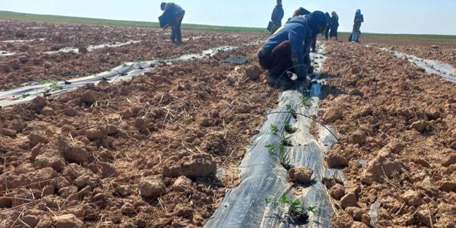 اختار الشاب وسيم قرمو الحاصل على شهادة الماجستير في الهندسة الزراعية أرضاً زراعية في قرية مخروم جنوب غرب الحسكة لتطوير طرق الإنتاج للزراعات التقليدية في المنطقة وإدخال محاصيل جديدة تعود بالفائدة على الأهالي.