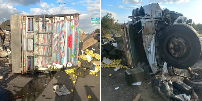 أصيب 4 مواطنين بجروح نتيجة اصطدام شاحنة بمركبتين أحدهما لنقل الركاب بداية أوتستراد المتحلق الجنوبي من جهة السومرية غرب دمشق.