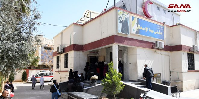 وحول تأهيل القطاع الصحي في المدينة، أوضح مدير مشفى دوما الإسعافي الدكتور خالد الحنش أنه تم إحداث هذا المشفى كبديل عن مشفى ريف دمشق التخصصي الذي دمرته التنظيمات الإرهابية، وذلك بتمويل من المجتمع المحلي لتجهيزه بالكامل واستثمار الأجهزة الموجودة بالشكل الأمثل.
