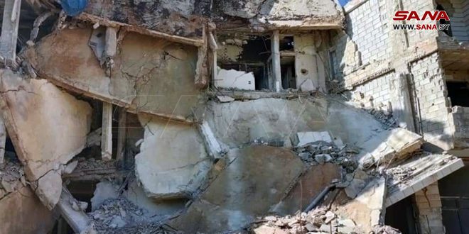 وفي تصريح لمراسلة سانا أوضح رئيس المجلس المهندس سمير درويش أن المبنى مختوم سابقاً وتم إنذار المالكين بضرورة الإزالة.